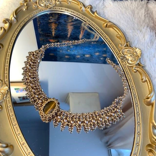 「Amber」Brown Metallic Luster Natural Stone Lace Collection