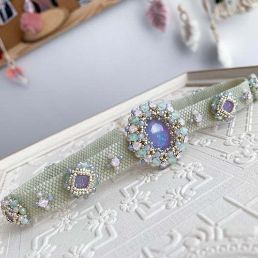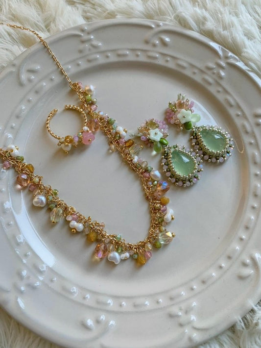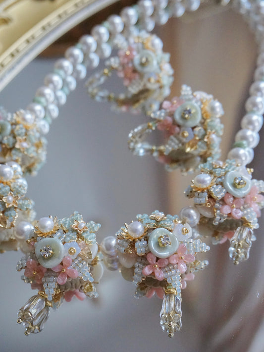 「Field Mint」Pink and Transparent Flower with Pearl Collection