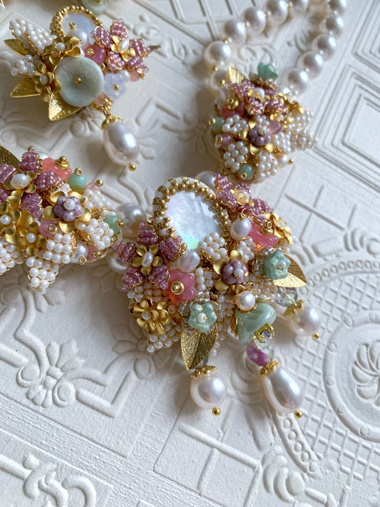「Garden of Dreams」Pink Flower with Pearl and Shellfish Collection